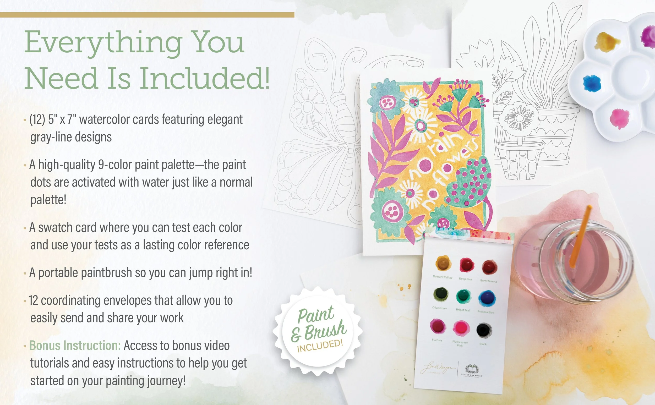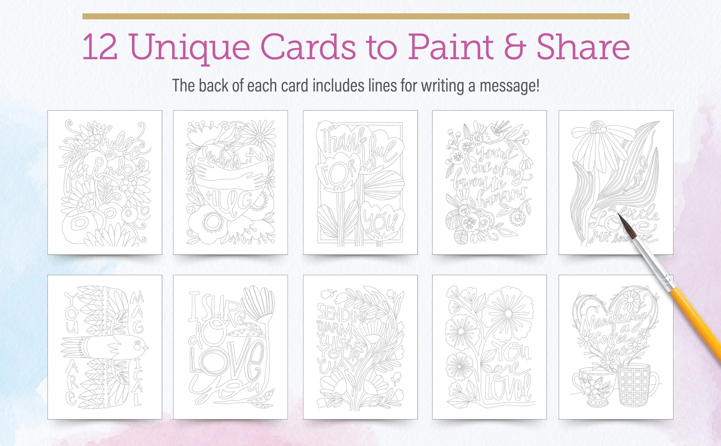My new watercolor kits are an invitation to slow down, get creative and enjoy the process!This launch includes 2 kits: a garden-inspired kit filled with beautiful blooms and a friendship-themed kit with meaningful messages perfect for sharing. Each kit includes 12 paintable cards with matching envelopes, featuring hand-drawn designs you can bring to life with quality watercolor paints.